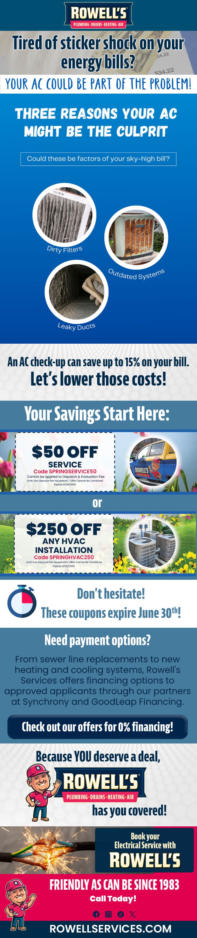 An AC check-up can save up to 15% on your bill. Let's lower those costs!